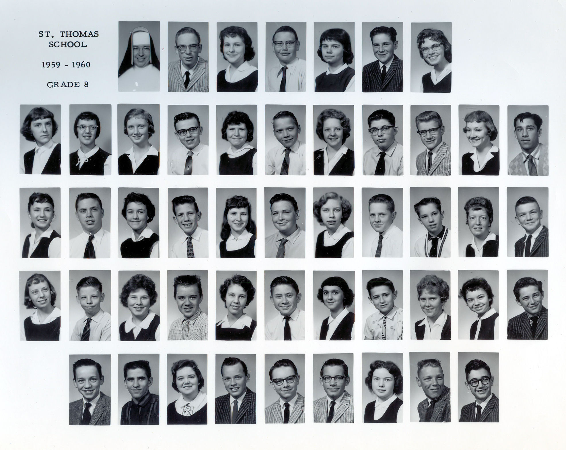 1959-1960 | 8th grade composite photos | 48 students in Eighth Grade, with Sr Daniela, IHM. | |