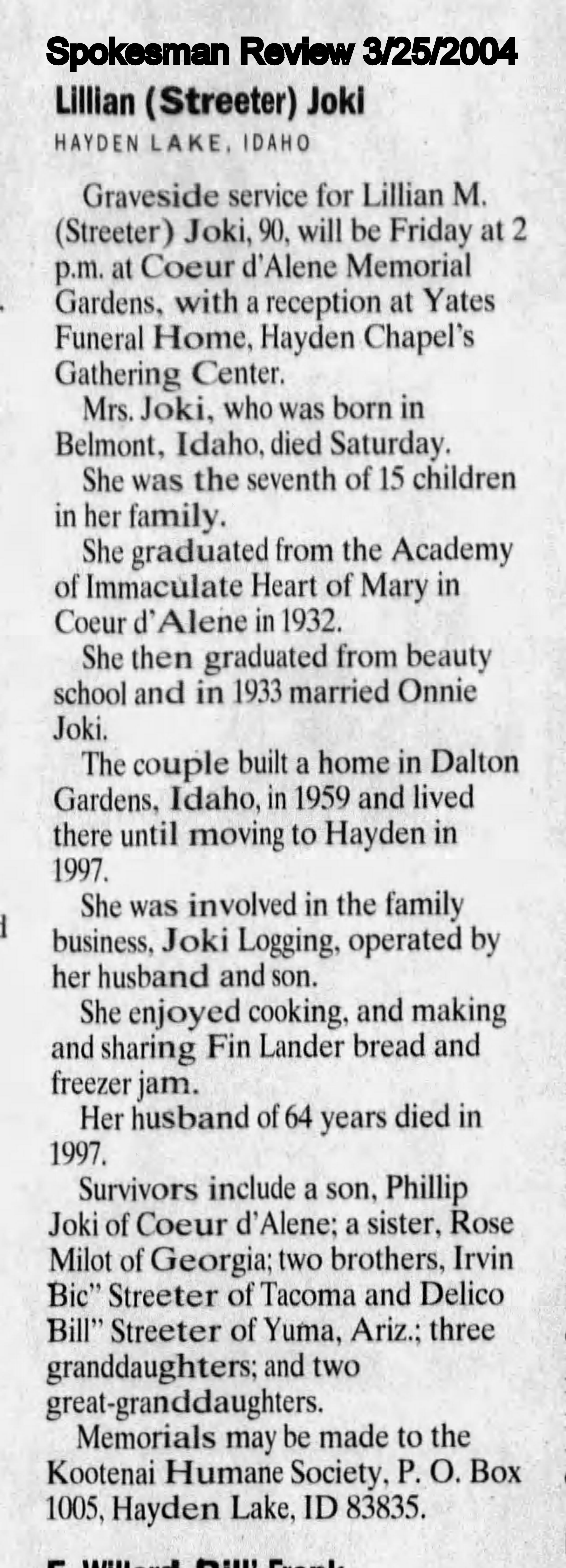 Spokesman-Review note: It appears that the Spokane paper removed all of it's content from the FindArticles website in June 2007. Many of the links below, to Spokesman-Review obituaries, no longer work. If the link contains this directory: "mi_qn4186", the link will come up as "publication not found".