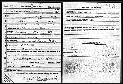 On 5 Jun 1917, George, 24, registered for the WW1 draft. He was a mercantile clerk in Zurich, Blaine Co MT.